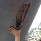 En 2015 on a trouvé un point d’infiltration dans la coque. On a fait une première réparation d’urgence au début de l’été, et on a tout rouvert pendant l’hiver pour que ça sèche et qu’on puisse faire quelque chose de propre!