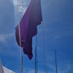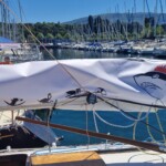 Première sortie pour Camille, qui accompagne Lola, Morse et Pingouin. Nouvelle mini-bâche pour la voile qui permettra de protéger la grande voile des UV tout en évitant qu’elle dévisse lorsque les lazyjacks sont rangés pour accueillir la bâche du cockpit. Super chou, les totems de toute la famille Macareux sont représentés!