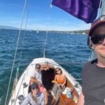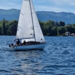 Départ à 14h au près pleines voiles jusqu’aux alentours de Versoix, retour le vent de le dos. On avait monté le tangon sur le pont mais finalement… profiter du soleil sans s’exciter l’aura emporté jusqu’au retour vers 17h.