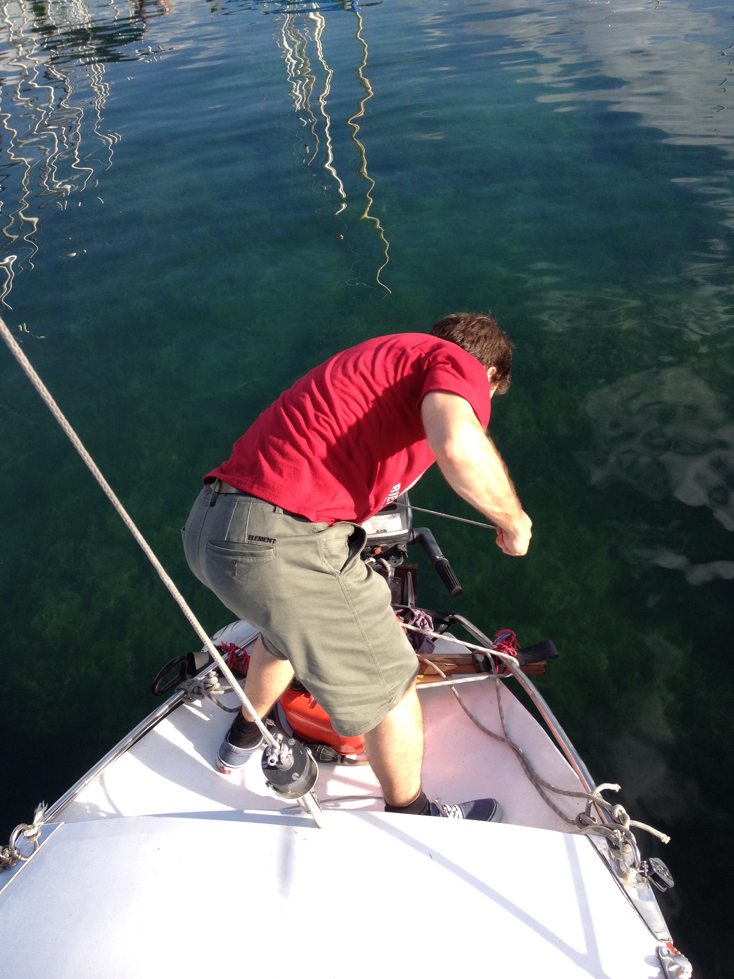 On a aussi enlevé notre moteur 2 temps inbord Vire, le remplacer c’est une autre affaire! En attendant on a navigué avec un petit hors-bord!